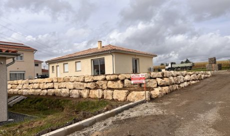 Chantier réalisé sur la commune de Frans proche de Villefranche sur Saône dans l'Ain. Réalisation d'un mur de soutènement en enrochement ayant pour but l'agrandissement de la...