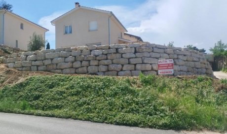 Création d'un mur de soutènement en pierres d'enrochement à Misérieux dans l'Ain